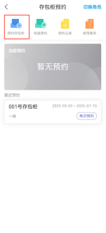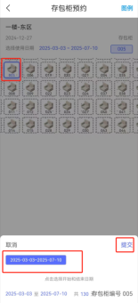 5、点击预约存包柜,选择区域、位置和时间点击提交。