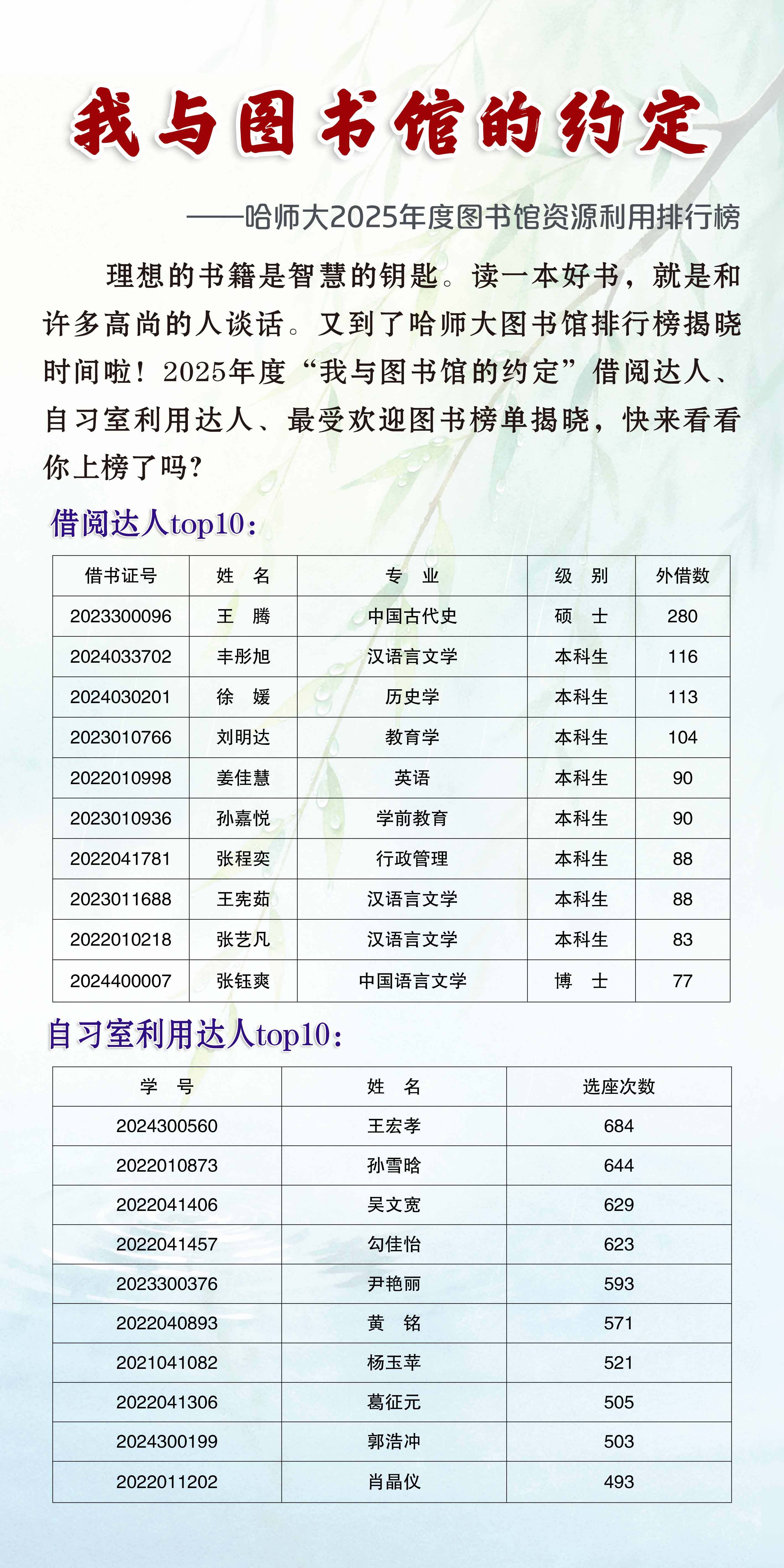 “我与图书馆的约定”2025年度图书馆资源排行榜